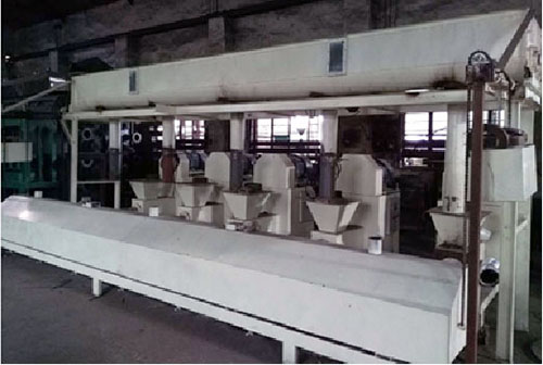2. Затем посредством одношнекового подающего конвейера и двухшнекового дистрибьютора таким образом подготовленное сырье подается на три брикетера для производства брикетов (это полуфабрикат, еще не древесный уголь). Эти брикеты далее следуют в карбонизационную (обугливающую) печь для производства конечной продукции.