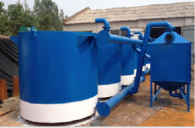 3. В линии используется биогазификатор (газогенератор), который вырабатывает горючий газ (метан, этан, окись углерода и т.д.) для последующего его использования в обугливающей печи. Вырабатываемый газификатором газ проходит очистку, после чего подается в днищевую часть обугливающей для предварительного нагрева.