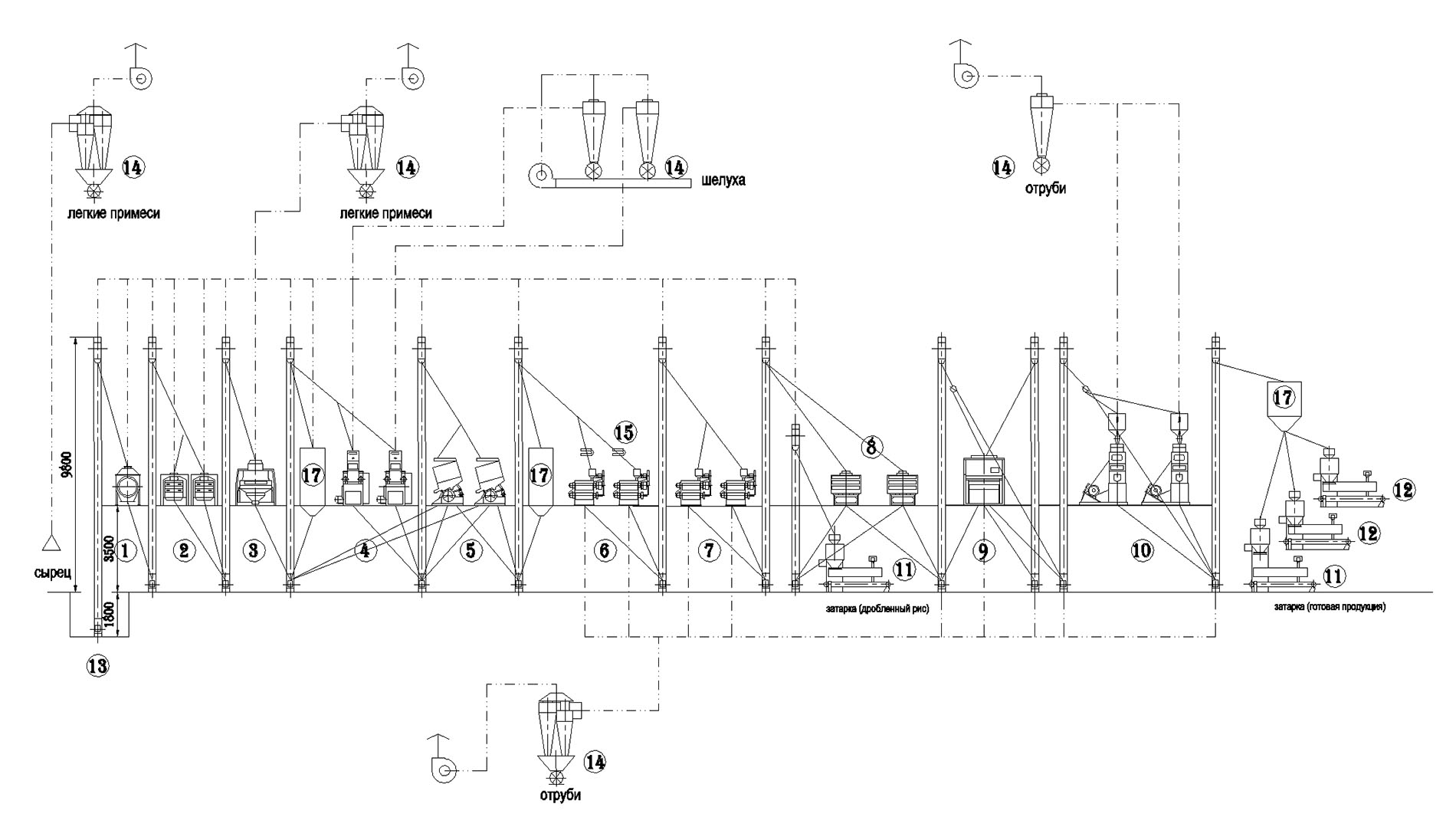 | 16 | Бункера для риса (готовой продукции) | 3 | ||||
