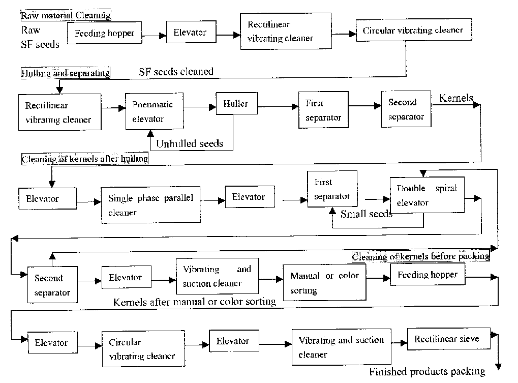 Flow chart of complete line for obtaining of super quality sunflower kernels |